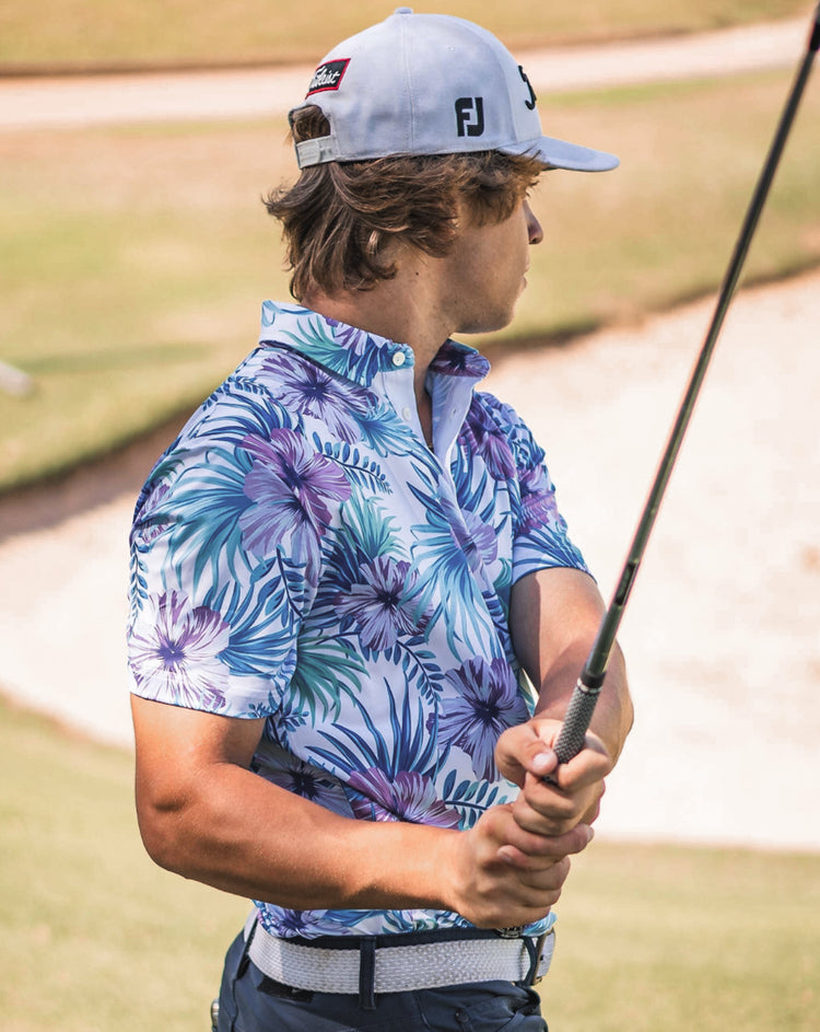 The iconic Hawaii 2.0 design is back and better than ever! This isn't your typical Hawaiian shirt - it's a Two Friends Golf original that's sure to turn heads on the course and beyond.