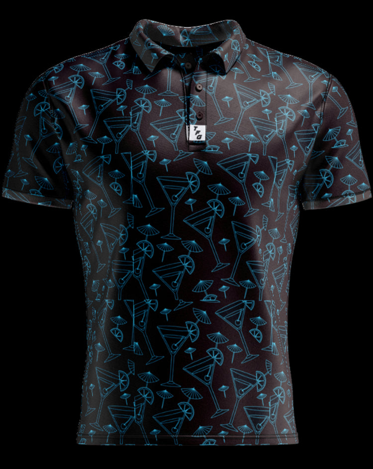 Step into the world of refined elegance and classic charm with our Blue Martini Golf Polo. Embrace the essence of sophistication as you indulge in the timeless allure of this exquisite polo, expertly designed to captivate on and off the greens. With its striking martini glass motif set against a sleek black base, the Blue Martini Polo is a true masterpiece that promises to elevate your golfing experience to new heights.
